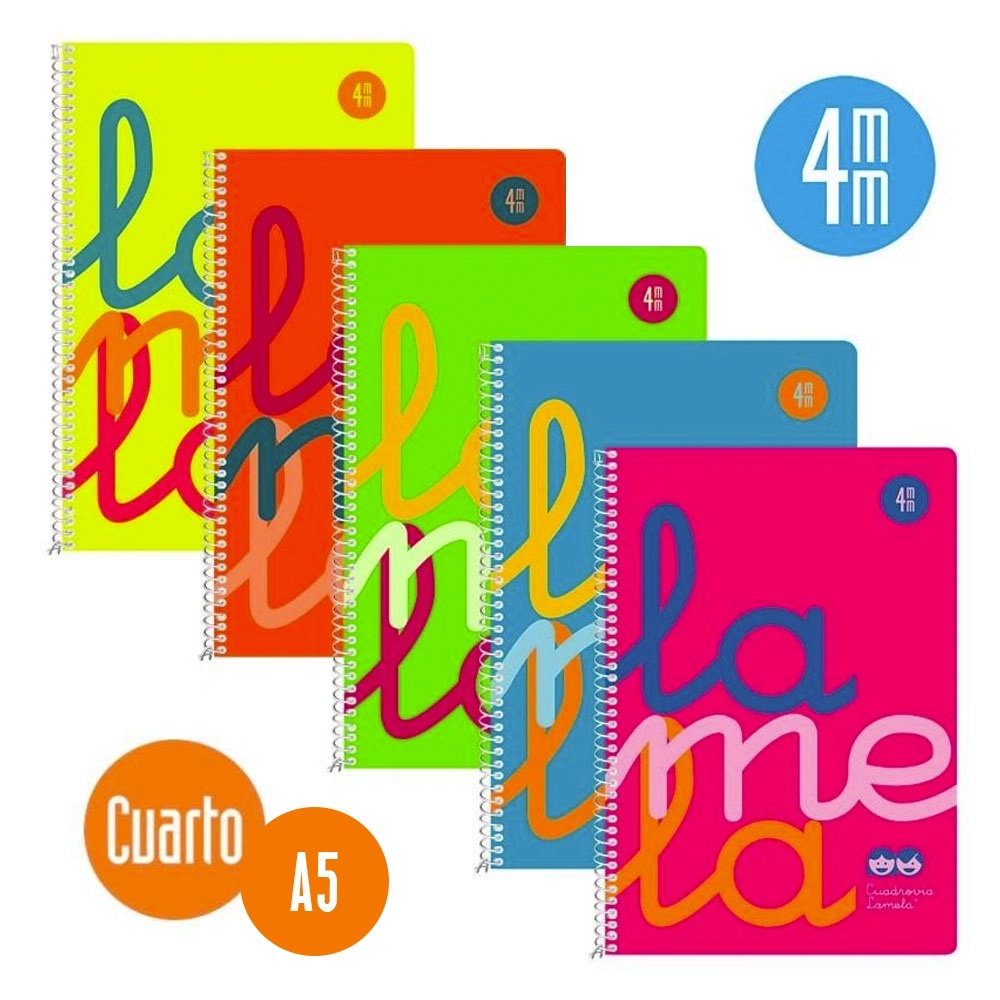 Offset blanco extra de 90 g/m con margen. Rayados con Cuadrovía Lamela® en tamaños de 2,5 mm, 3 mm, 4 mm y 5 mm.