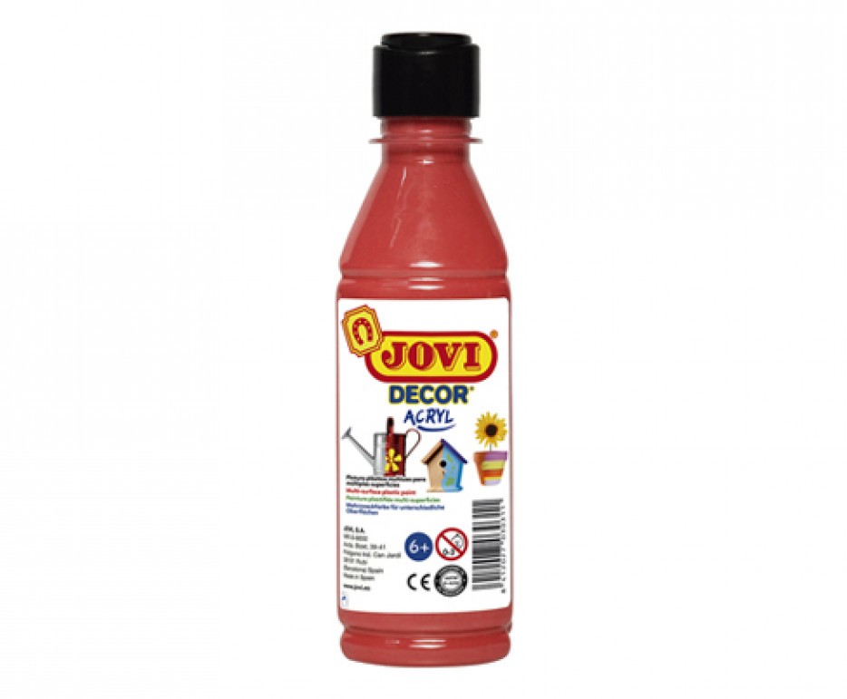Jovidecor Acryl es una pintura acrílica base agua que proporciona un acabado satinado. Gracias a su alto poder cubriente, basta una sola capa para obtener un resultado óptimo. Se aplica fácilmente sobre cualquier superficie, tanto en utensilios como en muebles y ropa, con la ayuda de todo tipo de instrumentos (pinceles, brochas, esponjas, etc.). Una vez seca es muy resistente al agua y jabón (antes de secarse) y totalmente inocua para el niño. Lavable (antes de secarse). Se puede utilizar en cualquier tipo de superficies. Resistente al agua una vez seca. Alto poder cubriente. Secado uniforme. Puede barnizarse para obtener un acabado más brillante y proteger el objeto pintado. Lista para usar. Ideal para pintar nuestras pastas Air Dry y Patmaché. Aplicación. Salpicado. Salpicar un cuadro con un cepillo de dientes es un método efectivo para darle textura. Para conseguir salpicaduras de mayor tamaño, se puede utilizar un pincel redondo cargado de color que se golpeará con toques bruscos sobre el mango de otro pincel o de los dedos. Estampación con esponja. Utilizando esponjas con formas, tomaremos la pintura a través de una paleta, donde habremos dispuesto o realizado la mezcla del color elegido. Luego presionaremos la esponja sobre la superficie para dejar su huella. Si lavamos la esponja antes de que se seque la pintura, ésta no nos quedará teñida con el color utilizado. Pintando con tres colores. Utilizando el azul, el bermellón y el amarillo, y la mezcla de los tres, podemos conseguir una gran variedad de colores. Pintado sobre Plastilina. Igual que pintamos sobre una figura seca de pasta Air Dry, Jovidecor Acryl nos permite poder añadir detalles o incluso colorear grandes zonas de una figura realizada con plastilina Jovi. Técnicas de lavado. Un lavado inadecuado puede introducir la mancha en las fibras. Lavar las prendas en la lavadora puede dejar restos fijados que son mucho más difíciles de quitar. Nunca debe secarse una prenda manchada en la secadora, ya que después la mancha podría ser imposible de quitar. No dejar secar la mancha. Enjuagar abundantemente con un chorro de agua a presión, mejor por el dorso. Un lavado normal a mano con detergente líquido o jabón natural en pastilla es suficiente para eliminar totalmente las manchas, mientras la pintura aún está fresca.