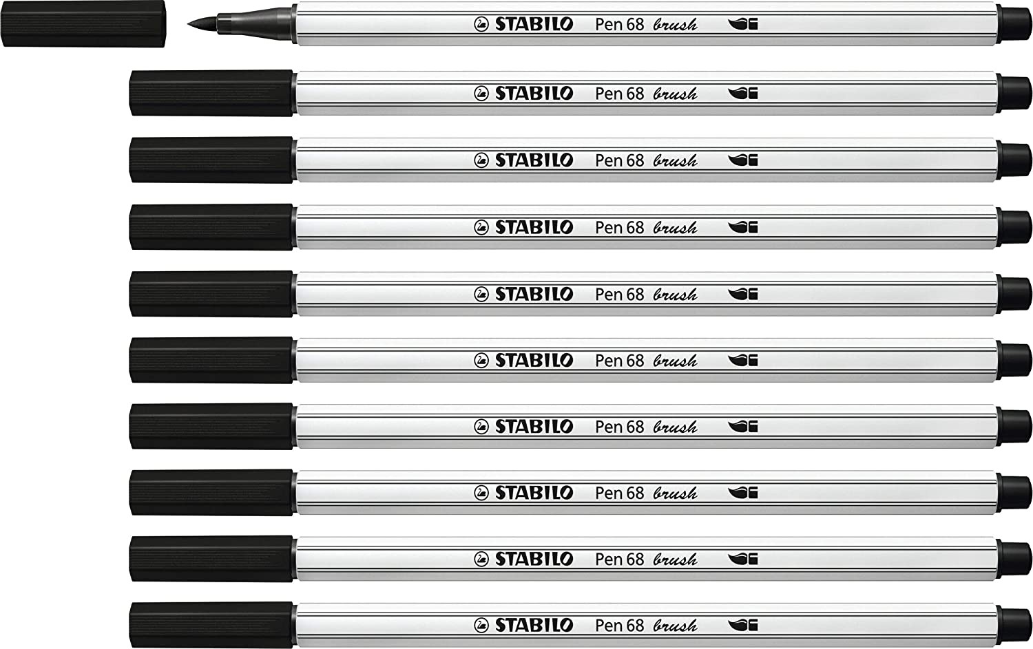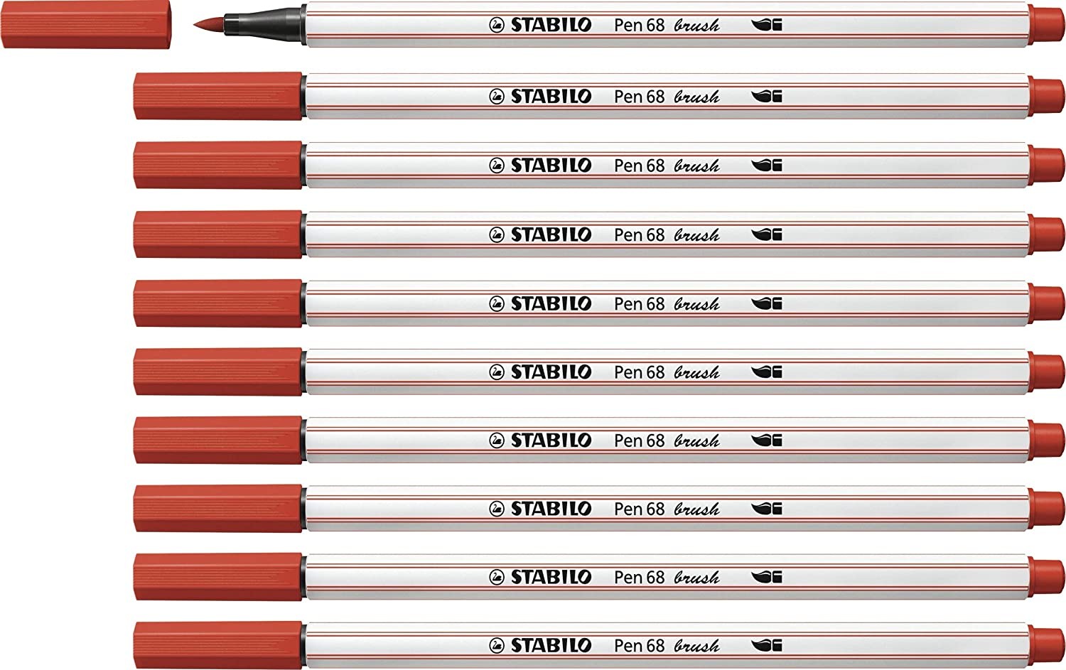 Rotulador de alta calidad con punta de fibra e intensos colores para trazos fuertes y amplias zonas a colorear. Pigmentos seleccionados con gran brillo y luminosidad. Punta Media (M) resistente (ancho de trazo 1 mm aprox.) para una aplicación de tinta uniforme. Inodoro, con tinta al agua.Tapón ventilado. Hasta 24 horas destapado sin secarse. Disponible en 41 colores estándar y 6 colores fluorescentes. Además, utilizando un pincel y un poco de agua se pueden realizar acuarelas.